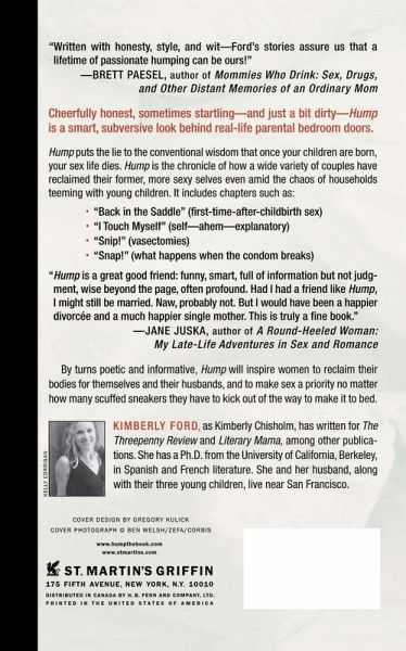 "Kimberly Ford is a gift to every woman who accidentally left her sex life in the maternity ward. Hump is brainy and earthy and downright inspiring."-Kelly Corrigan, author of The Middle Place Cheerfully honest, sometimes startling-and just a bit dirty-HUMP is a smart, subversive look behind real-life parental bedroom doors Hump puts the lie to the conventional wisdom that once your children are born, your sex life dies. Hump is the chronicle of how a wide variety of couples have reclaimed their former, more sexy selves even amid the chaos of households teeming with young children. Hump is organized into thought-providing sections, including chapters such as: --"Back in the Saddle" (first-time-after-childbirth sex) --"I touch myself" (self-ahem-explanatory) --"Snip!" (vasectomies) --"Snap!" (what happens when the condom breaks) By turns poetic and informative, Hump will inspire women to reclaim their bodies for themselves and their husbands, and to make sex a priority in their own lives no matter how many scuffed sneakers they have to kick out of the way to make it to bed.