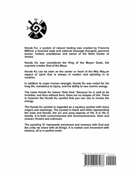 In the Hunab Ku system of natural healing, you will discover how to use the Hunab Ku symbol in a healing session for yourself and your loved ones. This manual includes easy to follow directions, diagrams, and illustrations. Also included is information on the seven main chakras and how to use the Hunab Ku symbol to activate, tone, balance and sedate the chakras. A list of protocols containing some common ailments will give you a quick reference on whether to use the Hunab Ku symbol to tone or sedate the chakras. The attunement, and the attunement process, is NOT included in this book but may be purchased in person or online at www.ReikiCenterofVenice.com for an additional fee. A certificate will be emailed to customers after the successful completion of the certification process. Hunab Ku is safe to use on children and pets. It is a loving and balancing symbol bringing peace and calm to an otherwise chaotic situation.