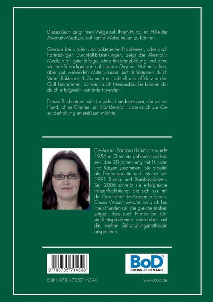 Dieses Buch zeigt Ihnen Wege auf, Ihrem Hund, mit Hilfe der Alternativ-Medizin, auf sanfte Weise helfen zu können.Gerade bei viralen und bakteriellen Problemen, oder auch hartnäckigen Durchfall-Erkrankungen, zeigt die Alternativ-Medizin oft gute Erfolge, ohne Resistenzbildung und ohne weitere Schädigungen auf andere Organe. Mit einfachen, aber gut wirkenden Mitteln lassen sich Infektionen durch Viren, Bakterien & Co nicht nur schnell und effektiv in den Griff bekommen, sondern auch Neuausbrüche können dadurch erfolgreich verhindert werden. Dieses Buch eignet sich für jeden Hundebesitzer, der seinen Hund, ohne Chemie, im Krankheitsfall, aber auch zur Gesunderhaltung unterstützen möchte.