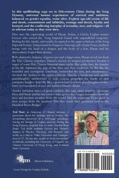 Ted Marr, an American of Chinese descent, is passionate about his heritage and its history. His astonishing discovery of a 1000-page genealogy, which detailed the lives of four thousand ancestors, and traced his lineage to Uyghur ancestry during the Song Dynasty 1000 years ago, inspired him to write Hundred Beam Bridge. Ted holds multiple Doctor and Master's degrees in Physics, Theology, and Business and works as a Silicon Valley Executive and Entrepreneur in IT. He has taught at several universities worldwide, including the University of Virginia, the Chinese University of Hong Kong, and Portland State University, George Fox University, Claremont College, CGST Hong Kong.