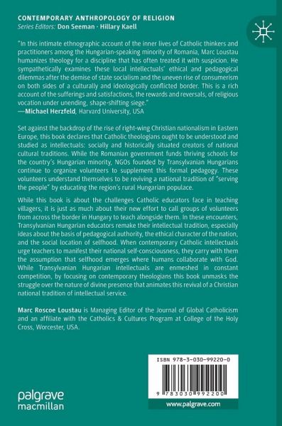 Set against the backdrop of the rise of right-wing Christian nationalism in Eastern Europe, this book declares that Catholic theologians ought to be understood and studied as intellectuals: socially and historically situated creators of national cultural traditions. While the Romanian government funds thriving schools for the country's Hungarian minority, NGOs founded by Transylvanian Hungarians continue to organize volunteers to supplement this formal pedagogy. These volunteers understand themselves to be reviving a national tradition of "serving the people" by educating the region's rural Hungarian populace.