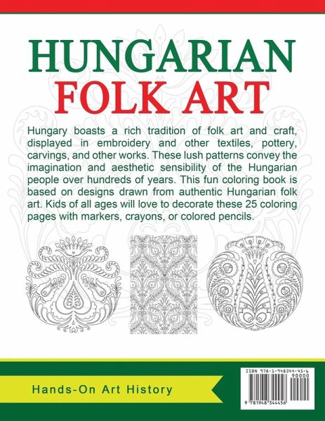 Hungary boasts a rich tradition of folk art and craft, displayed in embroidery and other textiles, pottery, carvings, and other works. These lush patterns convey the imagination and aesthetic sensibility of the Hungarian people over hundreds of years. This fun coloring book is based on designs drawn from authentic Hungarian folk art. Kids of all ages will love to decorate these 25 coloring pages with markers, crayons, or colored pencils.