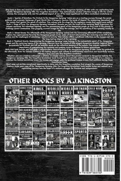 Introducing the "Hungarian Uprising 1956: The Forgotten Revolution" Book Bundle Step back in time and immerse yourself in the tumultuous era of the Hungarian Uprising of 1956 with our captivating book bundle, "Hungarian Uprising 1956: The Forgotten Revolution." This meticulously curated collection brings to life the untold stories, the courageous acts, and the profound impact of one of the most significant but often overlooked revolutions in history. Book 1: "Sparks of Rebellion: The Prelude to the Hungarian Uprising" takes you on a riveting journey through the social, political, and economic landscape of post-World War II Hungary. Uncover the seeds of dissent, the simmering discontent, and the events that ignited the spark of rebellion. This volume sets the stage for the explosive events that would soon unfold. Book 2: "Days of Fury: The Hungarian Uprising Unleashed" thrusts you into the heart of the uprising itself. Experience the intense emotions, the relentless fighting, and the unwavering spirit of the Hungarian people as they took to the streets to challenge Soviet domination. This gripping account brings the fury, the courage, and the sacrifices of the uprising vividly to life. Book 3: "Silent Voices: The Aftermath of the Hungarian Uprising" delves into the harrowing aftermath of the revolution. Explore the repercussions faced by the Hungarian people in the wake of Soviet intervention, the enduring scars left on the nation, and the challenges of rebuilding a shattered society. This volume offers a profound reflection on the human cost and the long-lasting impact of the uprising. Book 4: "Resilient Hearts: Remembering the Hungarian Uprising" pays homage to the indomitable spirit of the Hungarian people and the enduring legacy of the uprising. Discover how the events of 1956 shaped Hungarian identity, inspired future movements for freedom, and left an indelible mark on the collective memory of the nation. This volume explores the importance of remembering the uprising and passing down its lessons to future generations. With this book bundle, you will gain a comprehensive understanding of the Hungarian Uprising of 1956. From the prelude to the aftermath, from the intense battles to the lasting impact, each volume is meticulously researched and beautifully written, offering a deep dive into this forgotten revolution. Whether you are a history enthusiast, a scholar, or simply curious about this pivotal moment in Hungarian history, the "Hungarian Uprising 1956: The Forgotten Revolution" book bundle is an invaluable addition to your library. It is a chance to uncover the hidden narratives, honor the heroes, and engage with the profound human drama that unfolded during those tumultuous times. Don't miss out on this exceptional opportunity to delve into the forgotten revolution that shaped the course of Hungarian history. Order your copy of the "Hungarian Uprising 1956: The Forgotten Revolution" book bundle today and embark on a captivating journey into the heart of a nation's struggle for freedom and independence.