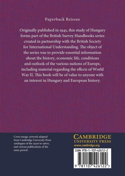 Originally published in 1945, this study of Hungary forms part of the British Survey Handbooks series created in partnership with the British Society for International Understanding. The object of the series was to provide essential information about the history, economic life, conditions and outlook of the various nations of Europe, including material regarding the effects of World War II. This book will be of value to anyone with an interest in Hungary and European history.