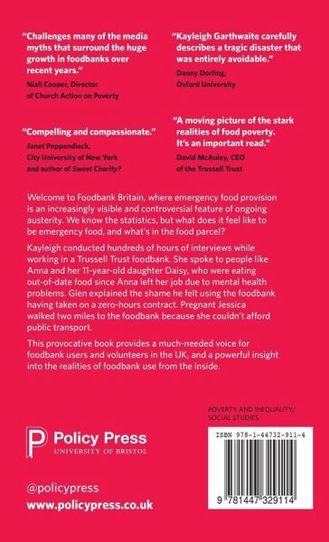 Dr Kayleigh Garthwaite is a Birmingham Fellow in the School of Social Policy, Sociology and Criminology, University of Birmingham, UK. Kayleigh explores issues of poverty, stigma and welfare reform through qualitative and ethnographic research. She is author of Hunger Pains: life inside foodbank Britain (Policy Press, 2016) and co-author of Poverty and insecurity: Life in 'low-pay, no-pay' Britain (Policy Press, 2012), winners of the Peter Townsend Prize 2017 and 2013 respectively. She can be followed on Twitter @KA_Garthwaite