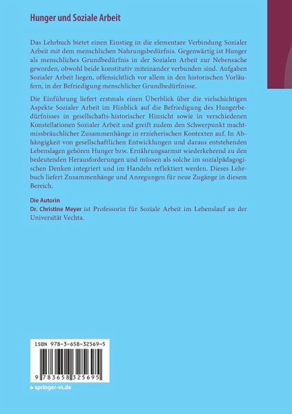 Das Lehrbuch bietet einen Einstieg in die elementare Verbindung Sozialer Arbeit mit dem menschlichen Nahrungsbedürfnis. Gegenwärtig ist Hunger als menschliches Grundbedürfnis in der Sozialen Arbeit zur Nebensache geworden, obwohl beide konstitutiv miteinander verbunden sind. Aufgaben Sozialer Arbeit liegen, offensichtlich vor allem in den historischen Vorläufern, in der Befriedigung menschlicher Grundbedürfnisse.