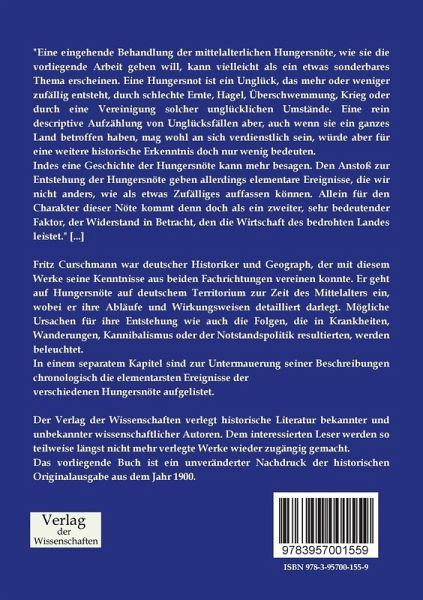 Fritz Curschmann war deutscher Historiker und Geograph, der mit diesem Werke seine Kenntnisse aus beiden Fachrichtungen vereinen konnte. Er geht auf Hungersnöte auf deutschem Territorium zur Zeit des Mittelalters ein, wobei er ihre Abläufe und Wirkungsweisen detailliert darlegt. Mögliche Ursachen für ihre Entstehung wie auch die Folgen, die in Krankheiten, Wanderungen, Kannibalismus oder der Notstandspolitik resultierten, werden beleuchtet.