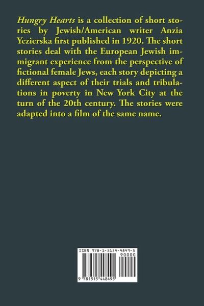 Hungry Hearts is a collection of short stories by Jewish/American writer Anzia Yezierska first published in 1920. The short stories deal with the European Jewish immigrant experience from the perspective of fictional female Jews, each story depicting a different aspect of their trials and tribulations in poverty in New York City at the turn of the 20th century. The stories were adapted into a film of the same name.