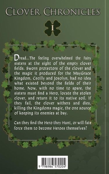 When the source of their Kingdom's magic is stolen, two Fairy sisters, Cecilly and Josolyn, sworn protectors of the clover fields, must find a Hero, locate the stolen clover, and return it to its native soil. If they fail, the clover withers and dies, killing the Kingdom's magic, the one source of keeping its enemies at bay. Their quest will take them far beyond the borders of the clover fields and the security of the only land they have ever known. Will the Fairies find the Hero they Hunt, or will fate force them to become Heroes themselves?
