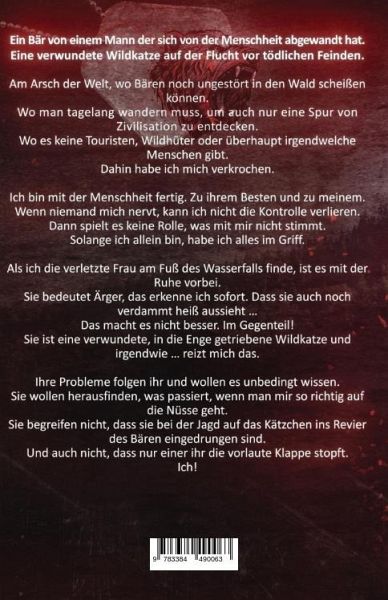 Ein Bär von einem Mann der sich von der Menschheit abgewandt hat.Eine verwundete Wildkatze auf der Flucht vor tödlichen Feinden.Am Arsch der Welt, wo Bären noch ungestört in den Wald scheißen können.Wo man tagelang wandern muss, um auch nur eine Spur von Zivilisation zu entdecken.Wo es keine Touristen, Wildhüter oder überhaupt irgendwelche Menschen gibt.Dahin habe ich mich verkrochen.Ich bin mit der Menschheit fertig. Zu ihrem Besten und zu meinem.Wenn niemand mich nervt, kann ich nicht die Kontrolle verlieren.Dann spielt es keine Rolle, was mit mir nicht stimmt.Solange ich allein bin, habe ich alles im Griff.Als ich die verletzte Frau am Fuß des Wasserfalls finde, ist es mit der Ruhe vorbei.Sie bedeutet Ärger, das erkenne ich sofort. Dass sie auch noch verdammt heiß aussieht ...Das macht es nicht besser. Im Gegenteil!Sie ist eine verwundete, in die Enge getriebene Wildkatze und irgendwie ... reizt mich das.Ihre Probleme folgen ihr und wollen es unbedingt wissen.Sie wollen herausfinden, was passiert, wenn man mir so richtig auf die Nüsse geht.Sie begreifen nicht, dass sie bei der Jagd auf das Kätzchen ins Revier des Bären eingedrungen sind.Und auch nicht, dass nur einer ihr die vorlaute Klappe stopft.Ich!Dark Primal Romance von den Darkstones. Schmutzig, wie der schwarze Fleck auf der weißen Weste. Verdorben, wie die heißen Worte in Momenten höchster Leidenschaft. Animalisch, wie die wilde Begierde des ursprünglichen Triebs. Dark, hot, messy - wie echte Gefühle von echten Menschen im echten Leben. Am besten genossen auf einem Bett und mit einem Dessert aus purer Romantik.~~~~~~~~~~~~ Einzelband