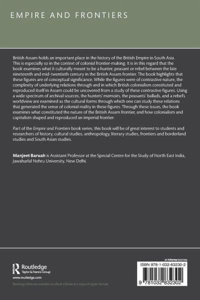 British Assam holds an important place in the history of the British Empire in South Asia. This is especially so in the context of colonial frontier- making. It is in this regard that the book examines what it culturally meant to be a hunter, peasant or rebel between the late nineteenth and mid-twentieth centuries in the British Assam frontier. The book highlights that these figures are of conceptual significance. While the figures were of contrastive nature, the complexity of underlying relations through and in which British colonialism constituted and reproduced itself in Assam could be uncovered from a study of these contrastive figures. Using a wide spectrum of archival sources, the hunters' memoirs, the peasants' ballads and a rebel's worldview are examined as the cultural forms through which one can study these relations that generated the sense of colonial reality in these figures. Through these issues, the book examines what constituted the nature of the British Assamfrontier, and how colonialism and capitalism shaped and reproduced an imperial frontier.