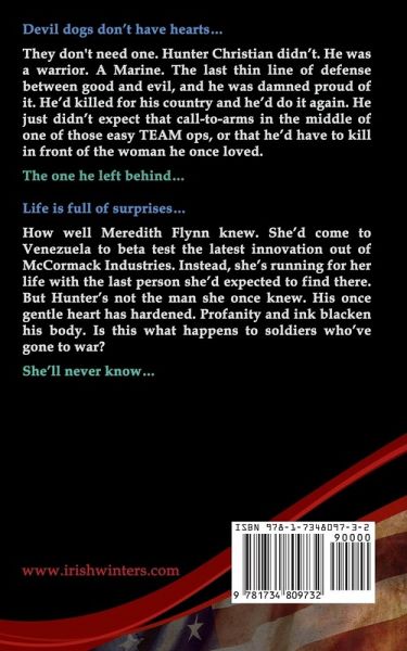 Book Description: Devil dogs don't have hearts... They don't need one. Hunter Christian didn't. He was a warrior. A Marine. The last thin line of defense between good and evil, and he was damned proud of it. He'd killed for his country and he'd do it again. He just didn't expect that call-to-arms in the middle of one of those easy TEAM ops, or that he'd have to kill in front of the woman he loved. The one he left behind... Life is full of surprises... How well Meredith Flynn knew. She'd come to Venezuela to beta test the latest innovation out of McCormack Industries. Instead, she's running for her life with the last person she'd expected to find there. But Hunter's not the man she used to know. His once gentle heart has hardened. Profanity and ink blacken his body. Is this what happens to soldiers, to men who've gone to war? She'll never know...