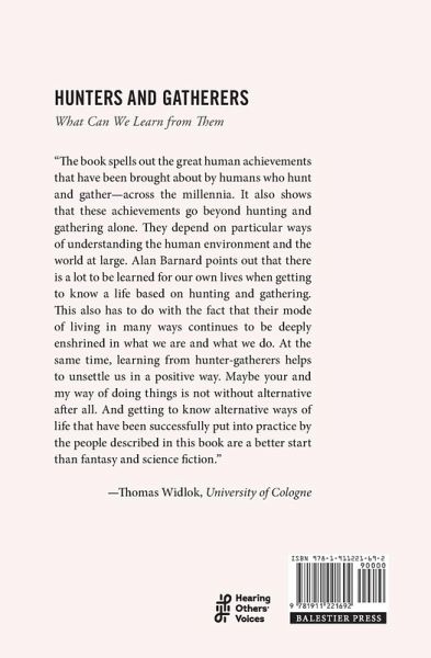 "The book spells out the great human achievements that have been brought about by humans who hunt and gather - across the millennia. It also shows that these achievements go beyond hunting and gathering alone. They depend on particular ways of understanding the human environment and the world at large. Barnard points out that there is a lot to be learned for our own lives when getting to know a life based on hunting and gathering. This also has to do with the fact that their mode of living in many ways continues to be deeply enshrined in what we are and what we do. At the same time, learning from hunter-gatherers helps to unsettle us in a positive way. Maybe your and my way of doing things is not without alternative after all. And getting to know alternative ways of life that have been successfully put into practice by the people described in this book are a better start than fantasy and science fiction. However, the biggest lesson of all is to understand how things are connected and how people are connected. This also means that it would be naive to think that one could simply import isolated practices from elsewhere without there being effects that reach far into all domains of life. The living hunter-gatherers that Alan Barnard introduces us to in this book are often prevented to continue their way of life because of what the rest of us do: the amount of resources that we use and waste, the grabbing of land that serves a world economy banking on unsustainable growth, the power that we abuse when dealing with indigenous minorities and a false sense of superiority towards hunter-gatherers." Thomas Widlok, University of Cologne Alan Barnard FBA is Emeritus Professor of the Anthropology of Southern Africa in the University of Edinburgh. He studied in the United States, Canada and England and has taught at the University of Cape Town, University College London and the University of Edinburgh. Since 1974, he has conducted field research with Bushmen or San in Botswana, Namibia and South Africa. He served as an Honorary Consul of Namibia for eleven years, and in 2010 he was elected a Fellow of the British Academy. Among his many books are Research Practices in the Study of Kinship (co-authored, 1984), A Nharo Wordlist with Notes on Grammar (1985), Hunters and Herders of Southern Africa: A Comparative Ethnography of the Khoisan Peoples (1992), Kalahari Bushmen (children's book, 1993), History and Theory in Anthropology (2000), Social Anthropology (2006), Anthropology and the Bushman (2007), Social Anthropology and Human Origins (2011), Genesis of Symbolic Thought (2012), Language in Prehistory (2016) and Bushmen: Kalahari Hunter-Gatherers and Their Descendants (2019). His works were all written in English, but have been translated into 18 other languages.