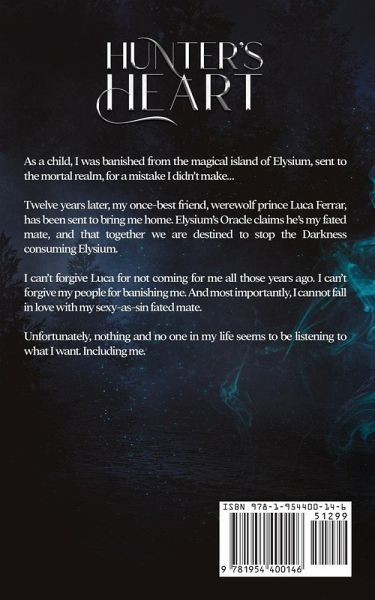 I was thrown out of paradise, into the mortal realm, for a mistake I didn't make. Born on the magical island of Elysium, heir to the Hunter territory, my life should have had a simple trajectory-become the best warrior I could, and one day take my father's place. But when I was twelve, Darkness spread through the island, and people needed someone to blame. The Oracle blamed me and five other girls, and the Elders banished us. That was twelve years ago. I've never learned to truly belong in the mortal realm, but even if I could return to Elysium, I can't forgive the betrayal of my banishment. Especially not from my best friend, werewolf prince Luca Ferrar, who swore he would come for me...and didn't. So when he shows up one night, it's too little too late. Because he isn't here to keep his promise to me. He's here because the Oracle prophesied again, spouting nonsense about how "the Six" as they call us, have to come back to stop the Darkness. To top it all off, Luca was sent for me because he's supposedly my fated mate, destined to stand at my side and help me fight the Darkness. I have no intention of helping the people who destroyed my life. And I certainly don't believe in prophecy or fated mates. But my soul longs for Elysium, and no matter how hard I fight it, my body longs for the man Luca's become. Worse, if I'm not careful, my heart will start wanting him too. Because something is deeply wrong in Elysium, and prophecy or no, Luca and I are the only ones who seem interested in fixing it. And there's a chance, just a small one, that Luca didn't betray me like I thought.