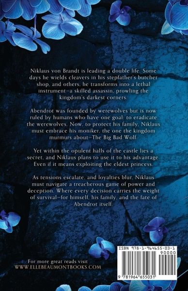 The Big Bad Wolf never killed for fun-he was on a mission. Niklaus von Brandt is leading a double life. Some days he wields cleavers in his stepfather's butcher shop, and others, he transforms into a lethal instrument-a skilled assassin, prowling the kingdom's darkest corners. Abendrot was founded by werewolves but is now ruled by humans who have one goal: to eradicate the werewolves. Now, to protect his family, Niklaus must embrace his moniker, the one the kingdom murmurs about-The Big Bad Wolf. Yet within the opulent halls of the castle lies a secret, and Niklaus plans to use it to his advantage. Even if it means exploiting the eldest princess. As tensions escalate, and loyalties blur, Niklaus must navigate a treacherous game of power and deception. Where every decision carries the weight of survival-for himself, his family, and the fate of Abendrot itself. The Hunter series offers a captivating blend of supernatural fantasy romance, brimming with werewolves, assassins, political intrigue, sharp wit, and thrilling battles. Perfect for fans of From Blood and Ash by Jennifer L. Armentrout, My Fair Assassin by C.J. Anaya, A Kiss of Iron by Clare Sager, and Throne of Glass by Sarah J. Maas. Embark on a journey where passion, danger, and secrets collide in a mesmerizing world of magic and mystery.