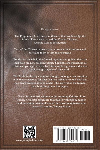 The saga continues... The Prophecy told of thirteen, thirteen that would sculpt the future. These were named the Cursed Thirteen. And the Cursed are hunted. Two of the Thirteen must strive to protect their brethren and persuade them to join their struggle. Bonds that once held the Cursed together and guided them on their path are now breaking apart. The links are weakening as relationships begin to dissolve. Sides are being taken, sides that will change the fate of the world. The World is already changing though, no longer can vampires hide their existence, for their war has spilled over and Man has now been dragged into its midst. The survival of the human race is at threat, war has begun. Hunters is the fourth volume in the stunning Crimson Lore series. A visceral adventure that pulses with blood, danger and the unique vision of one of the most imaginative new voices in vampire/fantasy fiction.
