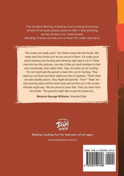 Culturally appropriate fishing, tracking and hunting stories come to life in the exciting Reading Tracks series. This book tells the story of a family tracking and cooking perentie. ¿Your purchase of this book supports Library For All in its mission to make knowledge available to all, equally.