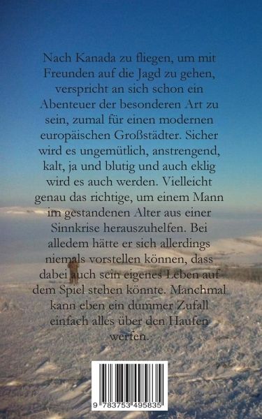 Nach Kanada zu fliegen, um mit Freunden auf die Jagd zu gehen verspricht schon an sich ein Abenteuer der besonderen Art zu sein, zumal für einen europäischen Großstädter. Sicher wird es ungemütlich, anstrengend, kalt, ja und blutig und auch eklig wird es auch werden. Vielleicht genau das richtige, um einem Mann im gestandenen Alter aus einer Sinnkrise herauszuhelfen. Bei alledem hätte er sich allerdings nicht vorstellen können, dass dabei auch sein eigenes Leben auf dem Spiel stehen könnte. Manchmal kann eben ein dummer Zufall einfach alles über den Haufen werfen.