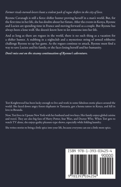Former rivals-turned-lovers hunt a violent pack of rogue shifters in the city of love. Ryenne Cavanagh is still a fierce shifter hunter proving herself in a man's world. But, for the first time in her life, she has doubts about her future. After the events in Kenya, Ryenne and Lucien are spending time in France and moving forward as a couple. But Ryenne has always been a lone wolf. She doesn't know how to let someone into her life. And as long as there are rogues in the world, there is no such thing as a vacation for a shifter hunter. A stabbing in a nightclub and a mysterious string of armed robberies challenge Ryenne to up her game. As the rogues continue to attack, Ryenne must find a way to save Lucien and his family, or she faces losing herself and her humanity. Don't miss out on the steamy continuation of Ryenne's adventure.