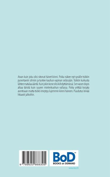 Aivan kuin joku olisi sitonut hänet kiinni. Poika näkee nyt syvälle tsökön punertaviin silmiin ja tuntee kauhun vapinan selässään. Tsökön kurkusta lähtee matalaa ääntä. Kuin jokin kone olisi kiihdyttämässä. Sen vasen dopis alkaa täristä kuin suuren mielenkuohun vallassa. Poika yrittää korjata asentoaan mutta tsökö imeytyy lujemmin kiinni häneen. Puudutus leviää hitaasti jalkoihin.