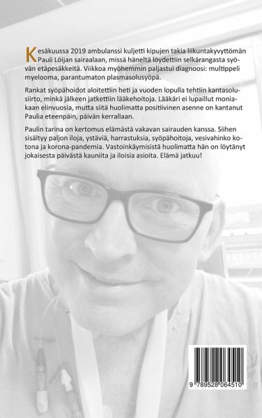 Kesäkuussa 2019 ambulanssi kuljetti kipujen takia liikuntakyvyttömän Pauli Löijan sairaalaan, missä häneltä löydettiin selkärangasta syövän etäpesäkkeitä. Viikkoa myöhemmin paljastui diagnoosi: multippeli myelooma, parantumaton plasmasolusyöpä. Rankat syöpähoidot aloitettiin heti ja vuoden lopulla tehtiin kantasolusiirto, minkä jälkeen jatkettiin lääkehoitoja. Lääkäri ei lupaillut moniakaan elinvuosia, mutta siitä huolimatta positiivinen asenne on kantanut Paulia eteenpäin, päivän kerrallaan. Paulin tarina on kertomus elämästä vakavan sairauden kanssa. Siihen sisältyy paljon iloja, ystäviä, harrastuksia, syöpähoitoja, vesivahinko kotona ja korona-pandemia. Vastoinkäymisistä huolimatta hän on löytänyt jokaisesta päivästä kauniita ja iloisia asioita. Elämä jatkuu!