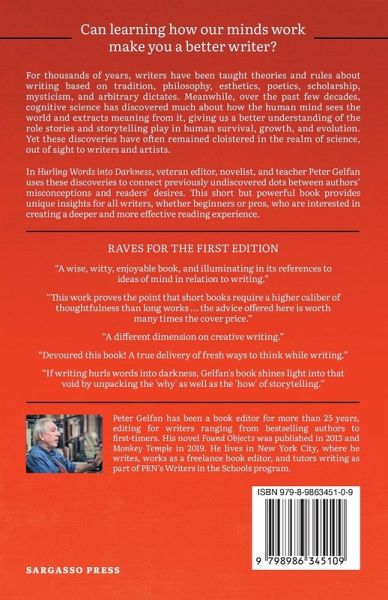 Can learning how our minds work make you a better writer? For thousands of years, writers in all media have been taught theories and rules about writing based on tradition, philosophy, esthetics, poetics, scholarship, mysticism, whim, pet peeves, and arbitrary dictates. Often they've been told how and what to write according to subjective preference rather than universal appeal, leaving them lost in a sea of conflicting advice. Meanwhile, over the past few decades, cognitive science has discovered much about how the human mind sees the world and extracts meaning from it, giving us a better understanding of the role stories and storytelling play in human survival, growth, and evolution. Yet these discoveries have often remained cloistered in the realm of science, out of sight to writers and artists. In Hurling Words into Darkness, veteran editor, novelist, screenwriter, and teacher Peter Gelfan uses these discoveries to connect previously undiscovered dots between authors' misconceptions and readers' expectations. This short but powerful book provides unique and actionable insights for all writers, whether beginners or pros, who are interested in creating a more engaging and effective reading experience. You'll learn to: Create memorable characters by treating them as real people Turn an intriguing premise into a page-turning plot Use subtext to add depth and complexity Choose the best POV and person for your story Balance dialogue and narrative effectively Discover which of your writing habits work against you And much more!