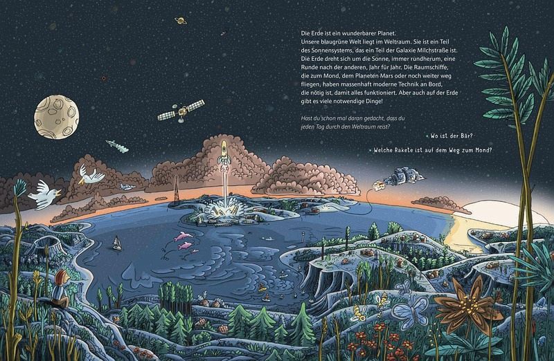 Die Zukunft unserer Erde als spannendes Abenteuer: Dieses interaktive Bildersachbuch nimmt kleinste Leser_innen mit auf eine aufregende Phantasiereise. Mit vielen Bildern im Wimmelbuch-Stil lädt es ein, miteinander ins Gespräch zu kommen, zu philosophieren und sich die Welt von morgen auszumalen.