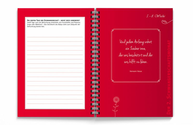 Die Zeit der Schwangerschaft ist unvergleichlich. Sie ist wundervoll, beeindruckend und erlebnisreich. Bis man den kleinen Junior endlich im Arm halten kann, dauert es ganze 40 bedeutsame Wochen. Jeden Tag wachsen Sie ein wenig mehr in Ihre neue Rolle als Mama hinein und es gibt jede Menge zu organisieren. Der weibliche Körper macht in dieser Zeit vieles durch und auch die Gefühlswelt gerät hier und da ein wenig durcheinander. Die möglichen Anstrengungen des Alltags sollten Ihnen dabei nicht die Sicht auf die schönen Aspekte der Schwangerschaft nehmen. Gönnen Sie sich regelmäßig Zeit, um sich in Ruhe Ihrer Emotionen bewusst zu werden. Es ist schlussendlich eine Zeit, an die sich die meisten Frauen gern zurückerinnern: das erste Strampeln im Bauch, das erste Ultraschall-Bild usw. Damit keiner dieser Eindrücke verloren geht, können Sie sie in diesem Tagebuch notieren.