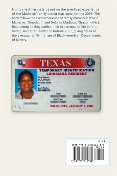 Hurricane America is based on the true events of Hurricane Katrina 2005 told by Marrio C. Mathews and Dolores Albert-Mathews. This story takes place in New Orleans, Louisiana chronicling the journey of the Mathews Family, escaping the disaster zone of Hurricane Katrina and their fated reunification. Readers will learn of the before, during, and after conditions of the average family that are Black American Descendents of Slavery. This book brings to light the vulnerabilities of this long-neglected community and provides possible solutions to assist families that are Black American Descendents of Slavery in the face of natural disaster and/or man-made disasters.