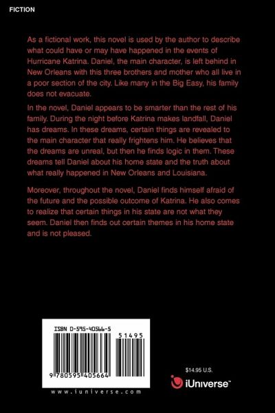 As a fictional work, this novel is used by the author to describe what could have or may have happened in the events of Hurricane Katrina. Daniel, the main character, is left behind in New Orleans with this three brothers and mother who all live in a poor section of the city. Like many in the Big Easy, his family does not evacuate. In the novel, Daniel appears to be smarter than the rest of his family. During the night before Katrina makes landfall, Daniel has dreams. In these dreams, certain things are revealed to the main character that really frightens him. He believes that the dreams are unreal, but then he finds logic in them. These dreams tell Daniel about his home state and the truth about what really happened in New Orleans and Louisiana. Moreover, throughout the novel, Daniel finds himself afraid of the future and the possible outcome of Katrina. He also comes to realize that certain things in his state are not what they seem. Daniel then finds out certain themes in his home state and is not pleased.