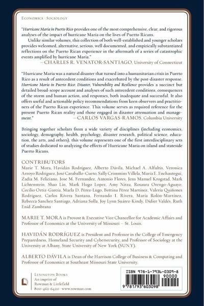With its 155 mile-per-hour sustained windspeeds, the near-Category 5 Hurricane Maria brought catastrophic devastation and destruction as it diagonally crossed the Commonwealth of Puerto Rico from the southeast to the northwest on September 20, 2017. The official death toll estimate of 2,975 lost lives means this record storm became one of the most devasting hurricanes not only for Puerto Rico but for the U.S. Many of these deaths, as well as the prolonged human suffering, were attributed to what was described as inadequate disaster response and slow restoration of basic services (including running water, electricity, and the provision and distribution of food and medicine), and not to the direct impact of the hurricane itself. At the same time, Hurricane Maria made landfall when Puerto Rico had been confronting a severe economic crisis surging for over a decade. This crisis, referred to as La Crisis Boricua, was characterized by a significant loss of industry and jobs, a deteriorating infrastructure, record net outmigration, a shrinking and rapidly aging population, rising healthcare under-coverage, a bankrupt government, and federal legislation restricting fiscal policy decisions made by elected officials on the island. Thus, Hurricane Maria exacerbated the effects of La Crisis Boricua on the socioeconomic, health, and demographic outcomes affecting Puerto Ricans on the island and U.S. mainland. Bringing together scholars from a wide variety of disciplines (including economics, sociology, demography, health, psychology, disaster research, political science, education, the arts, and others), this volume represents one of the first interdisciplinary sets of studies dedicated to analyzing the effects of Hurricane Maria on island and stateside Puerto Ricans. Specific topics cover Hurricane Maria’s impact on labor market outcomes, including wages and employment by industry; health implications, including mental health; changes in artistic expression; civic engagement; and disaster response and recovery. A common thread through many of the chapters was the destruction of Puerto Rico’s electrical grid and the prolonged restoration of electricity and other essential services that resulted in the loss of thousands of lives.