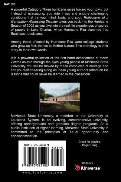 A powerful Category Three hurricane races toward your town, but instead of evacuating, you ride it out and endure challenging conditions that try your mind, body, and soul. Reflections of a Generation Witnessing Disaster takes you back into the Hurricane Season of 2005 as you dive into the real life experiences of scores of people in Lake Charles, when Hurricane Rita slammed into Southwest Louisiana. Among those affected by Hurricane Rita were college students who grew up fast, thanks to Mother Nature. This anthology is their story in their own word