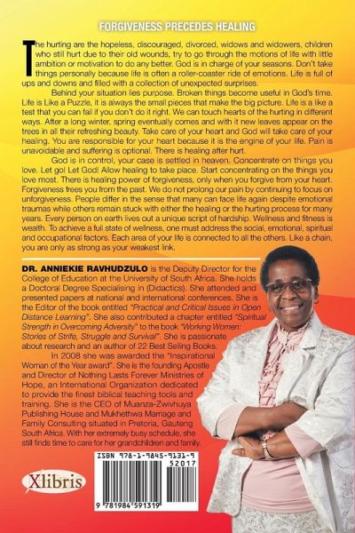 The hurting and healing are the hopeless, discouraged, divorced, widows and widowers, children who still hurt due to their old wounds, try to go through the motions of life with little ambition or motivation to do any better. God is in charge of your seasons. Don't take things personally because life is often a roller-coaster ride of emotions. Life is full of ups and downs and filled with a collection of unexpected surprises. Behind your situation lies purpose. Broken things become useful in God's time. Life is Like a Puzzle. Life is a like a test that you can fail if you don't do it right. We can touch hearts of the hurting in different ways. After a long winter, spring eventually comes and with it new leaves appear on the trees in all their refreshing beauty. Take care of your heart. You are responsible for your heart because it is the engine if your life. Pain is unavoidable and suffering is optional. There is healing after hurt. Your case is settled in heaven. Concentrate on things you love. Let go! Let God! Allow healing to take place. Your case is settled in heaven. Concentrate on things you love. Let go! Let God! Allow healing to take place. There is healing power of forgiveness. We do not prolong our pain by continuing to focus on unforgiveness. People differ in the sense that many can face life again despite emotional traumas while others remain stuck with either the healing or the hurting process for many years. You cannot run before God. Every person on earth lives out a unique script of hardship. Wellness and fitness is wealth. Each area of your life is connected to all the others. Like a chain, you are only as strong as your weakest link.
