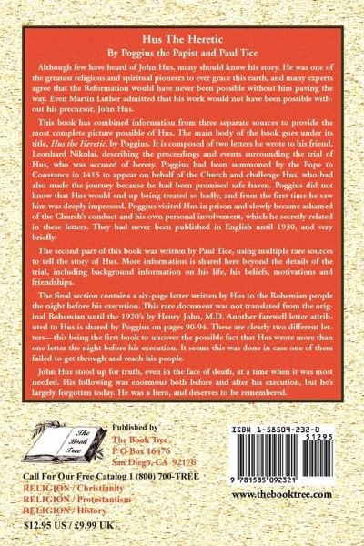 John Hus was one of the greatest religious and spiritual pioneers to ever grace this earth, and many experts agree that the Reformation would have never been possible without him paving the way. He paid for his beliefs, however, by being burned at the stake in 1415 at the age of 42. This book is composed of three sections meant to provide the most complete picture of Hus that we can assemble. The main section is composed of two detailed letters from Poggius, a witness to the trial, to a friend. He appeared on the Church's behalf, but became secretly allied with Hus. Paul Tice adds a section providing additional background information on Hus, including his beliefs, motivations and friendships. Lastly we find a six page letter written by John Hus to his followers the night before his execution.