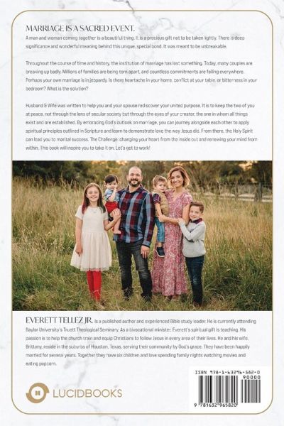 Marriage is a sacred event. A man and woman coming together is a beautiful thing. It is a precious gift not to be taken lightly. There is deep significance and wonderful meaning behind this unique, special bond. It was meant to be unbreakable. Throughout the course of time and history, the institution of marriage has lost something. Today, many couples are breaking up badly. Millions of families are being torn apart, and countless commitments are failing everywhere. Perhaps your own marriage is in jeopardy. Is there heartache in your home, conflict down your hallway, or bitterness in your bedroom? What is the solution? Husband & Wife was written to help you and your spouse rediscover your united purpose. It is to keep the two of you at peace, not through the lens of secular society but through the eyes of your creator, the one in whom all things exist and are established. By embracing God's outlook on marriage, you can journey alongside each other to apply spiritual principles outlined in Scripture and learn to demonstrate love the way Jesus did. From there, the Holy Spirit can lead you to marital success. The Challenge: changing your heart from the inside out and renewing your mind from within. This book will inspire you to take it on. Let's get to work!