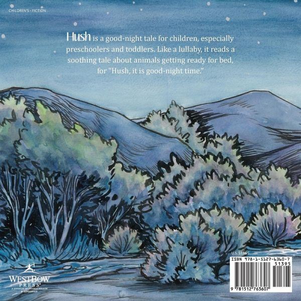 Hush is a good-night tale for children, especially preschoolers and toddlers. Like a lullaby, it reads a soothing tale about animals getting ready for bed, for "Hush, it is good-night time."
