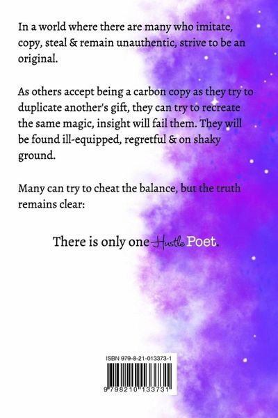 Hustle poet is modern anarchy poetry for the broken souls about the answers to the constant evolving perceptions and outlooks society presents daily, dealing with #Love, #Faith, #Hope, #Abuse in all forms, #Injustice, #Anger, #Dating, #Relationships in all states, #Environmental Issues, #Politics and much more. Taking a creative approach, the suggestion of a new perception amidst adversity has been crafted, cultivated, and released in poetic verse to caress real thoughts, actions, perspective, and wisdom into the minds of every reader who is in search of truth, guidance, and a new voice to gain understanding in a society of closed minds, vacant ears and a cold heart. The idea is to inspire by giving new life through an old medium. In order to fan the flames that burn for change inside each soul we encounter, we must first remain accountable for the aspects of our own enlightenment in the shade of turning blind eyes to visible actions. If you wish to be the change that is needed in our current world, wherever society may or may not welcome you, you must first open your mind to new concepts, expand your vision and focus on enhancing the perspective you lead life with by aligning yourself with a message of growth. Instead of living life building from the feet up, we enhance the life we choose to lead by being effective in creating the change starting from within. Only then can we align with our true vision and live our #purpose in truth. That is what builds the #Hustle of #Alignment within the #Poet. In a world where there are many who imitate, copy, steal and remain unauthentic, strive to be an original. As others accept being a carbon copy as they try to duplicate another's gift, they can try to recreate the same magic, insight will fail them. They will be found ill-equipped, regretful and on shaky ground. Many can try to cheat the balance, but the truth remains clear: There is only one Hustle Poet.