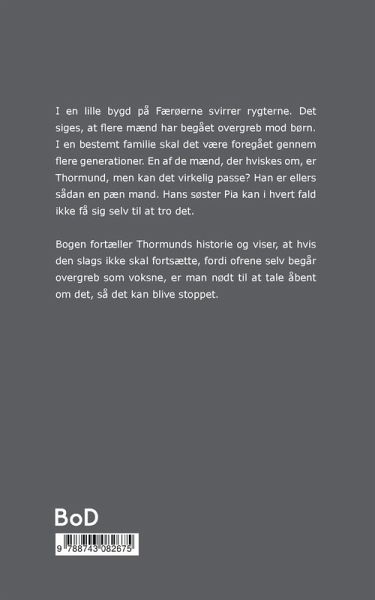 I en lille bygd på Færøerne svirrer rygterne. Det siges, at flere mænd har begået overgreb mod børn. I en bestemt familie skal det være foregået gennem flere generationer. En af de mænd, der hviskes om, er Thormund, men kan det virkelig passe? Han er ellers sådan en pæn mand. Hans søster Pia kan i hvert fald ikke få sig selv til at tro det. Bogen fortæller Thormunds historie og viser, at hvis den slags ikke skal fortsætte, fordi ofrene selv begår overgreb som voksne, er man nødt til at tale åbent om det, så det kan blive stoppet.