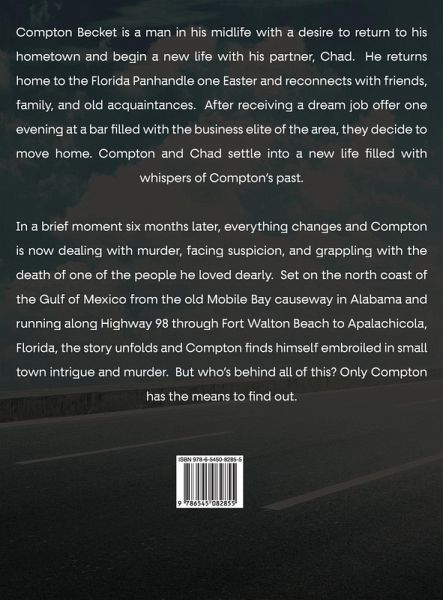 Compton Becket is a man in his midlife with a desire to return to his hometown and begin a new life with his partner, Chad. He returns home to the Florida Panhandle one Easter and reconnects with friends, family, and old acquaintances. After receiving a dream job offer one evening at a bar filled with the business elite of the area, they decide to move home. Compton and Chad settle into a new life filled with whispers of Compton's past. In a brief moment six months later, everything changes and Compton is now dealing with murder, facing suspicion, and grappling with the death of one of the people he loved dearly. Set on the north coast of the Gulf of Mexico from the old Mobile Bay causeway in Alabama and running along Highway 98 through Fort Walton Beach to Apalachicola, Florida, the story unfolds and Compton finds himself embroiled in small town intrigue and murder. But who's behind all of this? Only Compton has the means to find out.