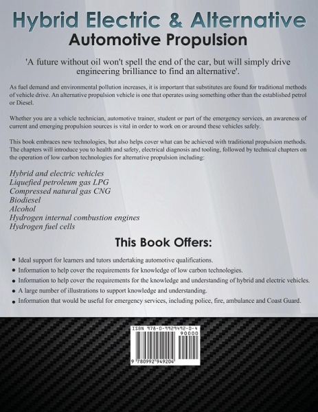 This book embraces new technologies, but also helps cover what can be achieved with traditional propulsion methods. The chapters will introduce health and safety, electrical diagnosis and tooling, followed by technical chapters on the operation of low carbon technologies for alternative propulsion including: Hybrid and electric vehicles Liquefied petroleum gas LPG Compressed natural gas CNG Biodiesel Alcohol Hydrogen internal combustion engines Hydrogen fuel cells This book offers: Ideal support for learners and tutors undertaking automotive qualifications. Information to help cover the requirements for knowledge of low carbon technologies. Information to help cover the requirements for the knowledge and understanding of hybrid and electric vehicles. A large number of illustrations to support knowledge and understanding. Information that would be useful for emergency services, including police, fire, ambulance and Coastguard.