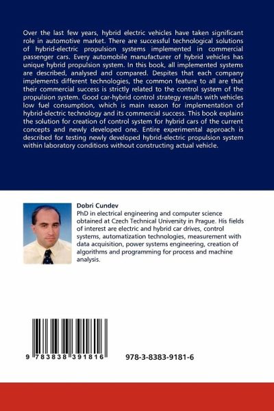 Over the last few years, hybrid electric vehicles have taken significant role in automotive market. There are successful technological solutions of hybrid-electric propulsion systems implemented in commercial passenger cars. Every automobile manufacturer of hybrid vehicles has unique hybrid propulsion system. In this book, all implemented systems are described, analysed and compared. Despites that each company implements different technologies, the common feature to all are that their commercial success is strictly related to the control system of the propulsion system. Good car-hybrid control strategy results with vehicles low fuel consumption, which is main reason for implementation of hybrid-electric technology and its commercial success. This book explains the solution for creation of control system for hybrid cars of the current concepts and newly developed one. Entire experimental approach is described for testing newly developed hybrid-electric propulsion system within laboratory conditions without constructing actual vehicle.