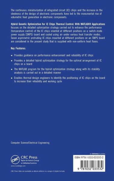 Hybrid Genetic Optimization for IC Chip Thermal Control: with MATLAB® applications focuses on the detailed optimization strategy carried out to enhance the performance (temperature control) of the IC chips oriented at different positions on an SMPS board (Switch mode power supply) and cooled using air under various heat transfer modes.