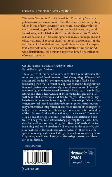We describe in this book, new methods for analysis and design of hybrid intelligent systems using soft computing techniques. Soft Computing (SC) consists of several computing paradigms, including fuzzy logic, neural networks, and genetic algorithms, which can be used to produce powerful hybrid intelligent systems for solving problems in pattern recognition, time series prediction, intelligent control, robotics and automation. Hybrid int- ligent systems that combine several SC techniques are needed due to the complexity and high dimensionality of real-world problems. Hybrid int- ligent systems can have different architectures, which have an impact on the efficiency and accuracy of these systems, for this reason it is very - portant to optimize architecture design. The architectures can combine, in different ways, neural networks, fuzzy logic and genetic algorithms, to achieve the ultimate goal of pattern recognition, time series prediction, - telligent control, or other application areas. This book is intended to be a major reference for scientists and en- neers interested in applying new computational and mathematical tools to design hybrid intelligent systems. This book can also be used as a textbook or major reference for graduate courses like the following: soft computing, intelligent pattern recognition, computer vision, applied artificial intel- gence, and similar ones. We consider that this book can also be used to get novel ideas for new lines of research, or to continue the lines of research proposed by the authors of the book.