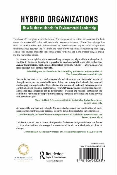 This book offers a glimpse into the future. The companies it describes are pioneers, the first-movers in market shifts that will eventually become mainstream. These "hybrid organizations" - or what others call "values-driven" or "mission-driven" organizations - operate in the blurry space between the for-profit and non-profit worlds. They are redefining their supply chains, their sources of capital, their very purpose for being; and in the process they are changing the market for others. Using a combination of high-level survey analysis and, more importantly, in-depth executive interviews, the book helps fill the present gap in literature on environmentally focused and financially driven for-profit businesses. Moreover, it highlights key trends and critical themes that enable this new wave of socially conscious and fiscally minded enterprises to be successful in meeting both sets of goals. The takeaway for readers of this book is not only an appreciation for common business practices that hybrid organizations adopt, but also an understanding of the complexity of the integration of such adoption that allows them to successfully achieve both mission- and market-driven goals. The book begins with key definitions to establish the scope of this new sector, including explicit definitions for hybrid organizations, environmental sustainability missions, as well as specific criteria to create useful boundaries for the field of hybrid organizations. Building on prior work conducted by researchers on corporate social responsibility, sustainable entrepreneurship, and social enterprise, the book catalogues the best practices within this growing sector, helping others to learn from both the successes and failures of those that are choosing this strategy. The core of the book is built on an analysis of survey data from 47 hybrid organizations, investigating their business models and strategies, finances, organizational structures, processes, metrics, and innovations. The organizations represent a cross-section of size, age, industry, and geography, although the sample set is biased towards young, small, U.S.-based hybrids. Based on analysis of the survey data, five best-in-class companies were selected for in-depth case studies in order to provide instructive lessons for hybrid practitioners and researchers alike. In short, this book presents research that shows hybrid organizations to be a practical and feasible organizational model for contributing solutions to global environmental issues. The lessons in this book will help other social entrepreneurs, business managers, non-profit leaders, or students interested in careers that fuse profitability and responsibility do it even better.