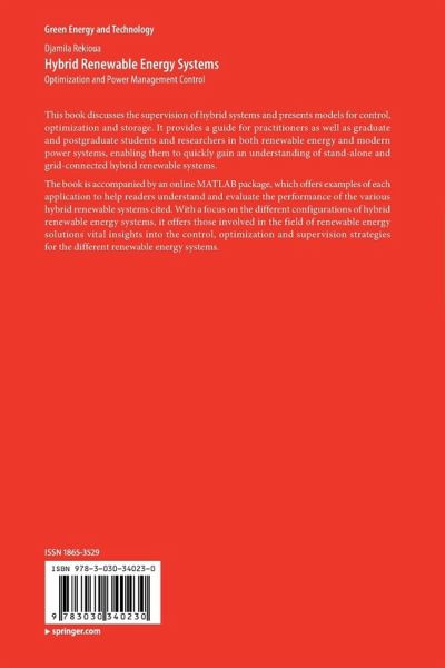 The book is accompanied by an online MATLAB package, which offers examples of each application to help readers understand and evaluate the performance of the various hybrid renewable systems cited. With a focus on the different configurations of hybrid renewable energy systems, it offers those involved in the field of renewable energy solutions vital insights into the control, optimization and supervision strategies for the different renewable energy systems.