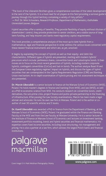 Hybrid capital securities or 'hybrids' offer various benefits. They offer flexibility equity without shareholder dilution, provide protection to senior creditors, are a stable source of long-term funding for healthy companies, and help insurers and banks meet regulatory and rating agency capital requirements. Risks and features of hybrid securities are expressed in the credit spread of some relatively new financial instruments, but no structural fundamentals exist for to price hybrids precisely.This book proposes a model for the pricing of hybrids. It begins by explaining the concept of hybrids as well as their equity- and debt-like characteristics. Different types of hybrids are presented, including preference shares, convertible bonds, contingent convertibles (CoCos) and bail-in bonds. The authors then present analysis of regulatory regimes' impact on hybrids. They discuss the types of hybrid bonds that are contemplated in the Capital Requirements Regulation (CRR) and Banking Unionmechanism. They then present an in-depth examination of hybrids pricing and risk assessment techniques. The book provides a comprehensive analysis from mathematical, legal and financial perspectives in order to look at relatively new financial instruments and address problems with the pricing models of hybrids which are as yet unsolved.