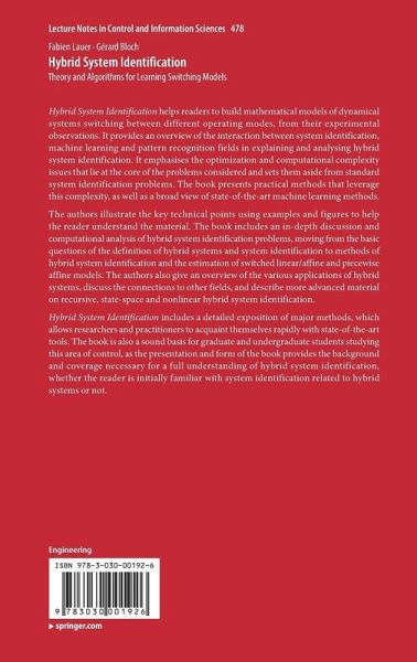 The authors illustrate the key technical points using examples and figures to help the reader understand the material. The book includes an in-depth discussion and computational analysis of hybrid system identification problems, moving from the basic questions of the definition of hybrid systems and system identification to methods of hybrid system identification and the estimation of switched linear/affine and piecewise affine models. The authors also give an overview of the various applications of hybrid systems, discuss the connections to other fields, and describe more advanced material on recursive, state-space and nonlinear hybrid system identification.