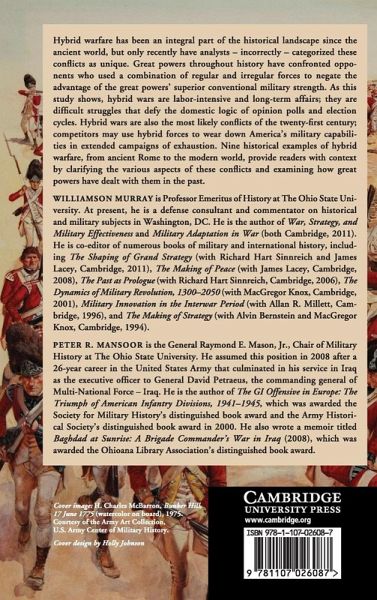 Hybrid warfare has been an integral part of the historical landscape since the ancient world, but only recently have analysts - incorrectly - categorised these conflicts as unique. Great powers throughout history have confronted opponents who used a combination of regular and irregular forces to negate the advantage of the great powers' superior conventional military strength. As this study shows, hybrid wars are labour-intensive and long-term affairs; they are difficult struggles that defy the domestic logic of opinion polls and election cycles. Hybrid wars are also the most likely conflicts of the twenty-first century, as competitors use hybrid forces to wear down America's military capabilities in extended campaigns of exhaustion. Nine historical examples of hybrid warfare, from ancient Rome to the modern world, provide readers with context by clarifying the various aspects of conflicts and examining how great powers have dealt with them in the past.