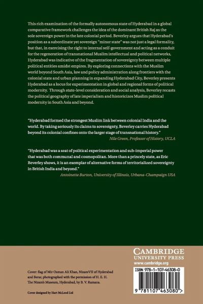 This examination of the formally autonomous state of Hyderabad in a global comparative framework challenges the idea of the dominant British Raj as the sole sovereign power in the late colonial period. Beverley argues that Hyderabad's position as a subordinate yet sovereign 'minor state' was not just a legal formality, but that in exercising the right to internal self-government and acting as a conduit for the regeneration of transnational Muslim intellectual and political networks, Hyderabad was indicative of the fragmentation of sovereignty between multiple political entities amidst empires. By exploring connections with the Muslim world beyond South Asia, law and policy administration along frontiers with the colonial state, and urban planning in expanding Hyderabad City, Beverley presents Hyderabad as a locus for experimentation in global and regional forms of political modernity. This book recasts the political geography of late imperialism and historicises Muslim political modernity in South Asia and beyond.