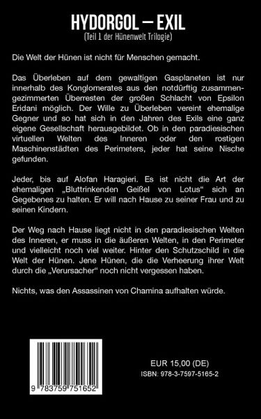 Die Welt der Hünen ist nicht für Menschen gemacht. Das Überleben auf dem gewaltigen Gasplaneten ist nur innerhalb des Konglomerates aus den notdürftig zusammen gezimmerten Überresten der großen Schlacht von Epsilon Eridani möglich. Der Wille zu Überleben vereint die ehemaligen Gegner und so hat sich in den Jahren des Exils eine ganz eigene Gesellschaft herausgebildet. Ob in den paradiesischen virtuellen Welten des Inneren oder den rostigen Maschinenstädten des Perimeters, jeder hat seine Nische gefunden. Jeder, bis auf Alofan Haragieri. Es ist nicht die Art der ehemaligen "Bluttrinkenden Geißel" von Lotus, sich an Gegebenes zu halten. Er will nach Hause, zu seiner Frau und zu seinen Kindern. Der Weg nach Hause liegt nicht in den paradiesischen Welten des Inneren, er muss in die äußeren Welten, in den Perimeter und vielleicht noch viel weiter. Hinter den Schutzschild in die Welt der Hünen. Jene Hünen, die die Verheerung ihrer Welt durch die "Verursacher" noch nicht vergessen haben. Nichts, was den Assassinen von Chamina aufhalten würde.